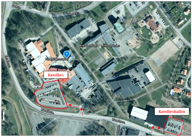 Det går även att parkera vid Kavelbrohallen, där parkeringstillstånd krävs för asfaltsparkeringen.